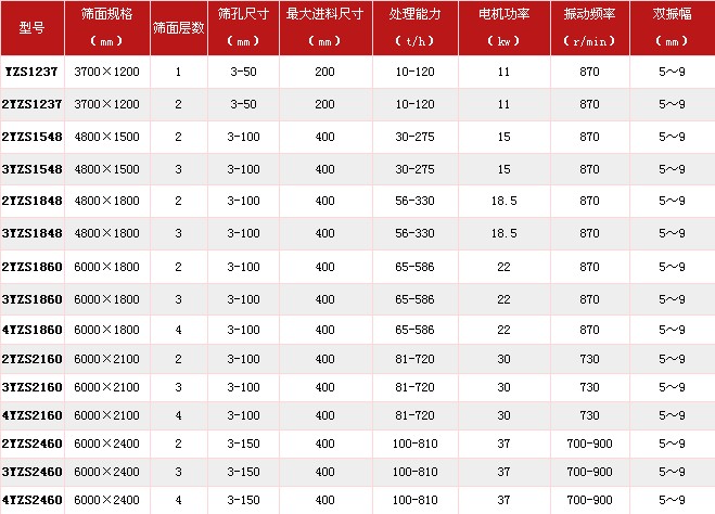 適用于煤、石灰石、碎石、砂礫、金屬或非金屬礦石及其他物料的篩分