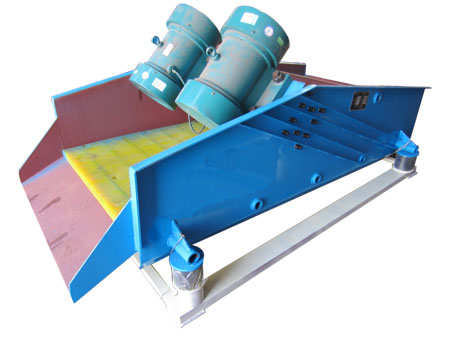 脫水篩采用了雙電機(jī)自同步技術(shù),通用型偏心塊、可調(diào)振幅振動(dòng)器。主要由篩箱、激振器、支撐系統(tǒng)及電機(jī)組成。兩個(gè)互不聯(lián)系的振動(dòng)器作同步反向運(yùn)轉(zhuǎn),兩組偏心質(zhì)量產(chǎn)生的離心力沿振動(dòng)方向的分力疊加,反向離心抵消,從而形成單一的沿振動(dòng)方向的激振動(dòng),使篩箱做作往復(fù)直線運(yùn)動(dòng)。